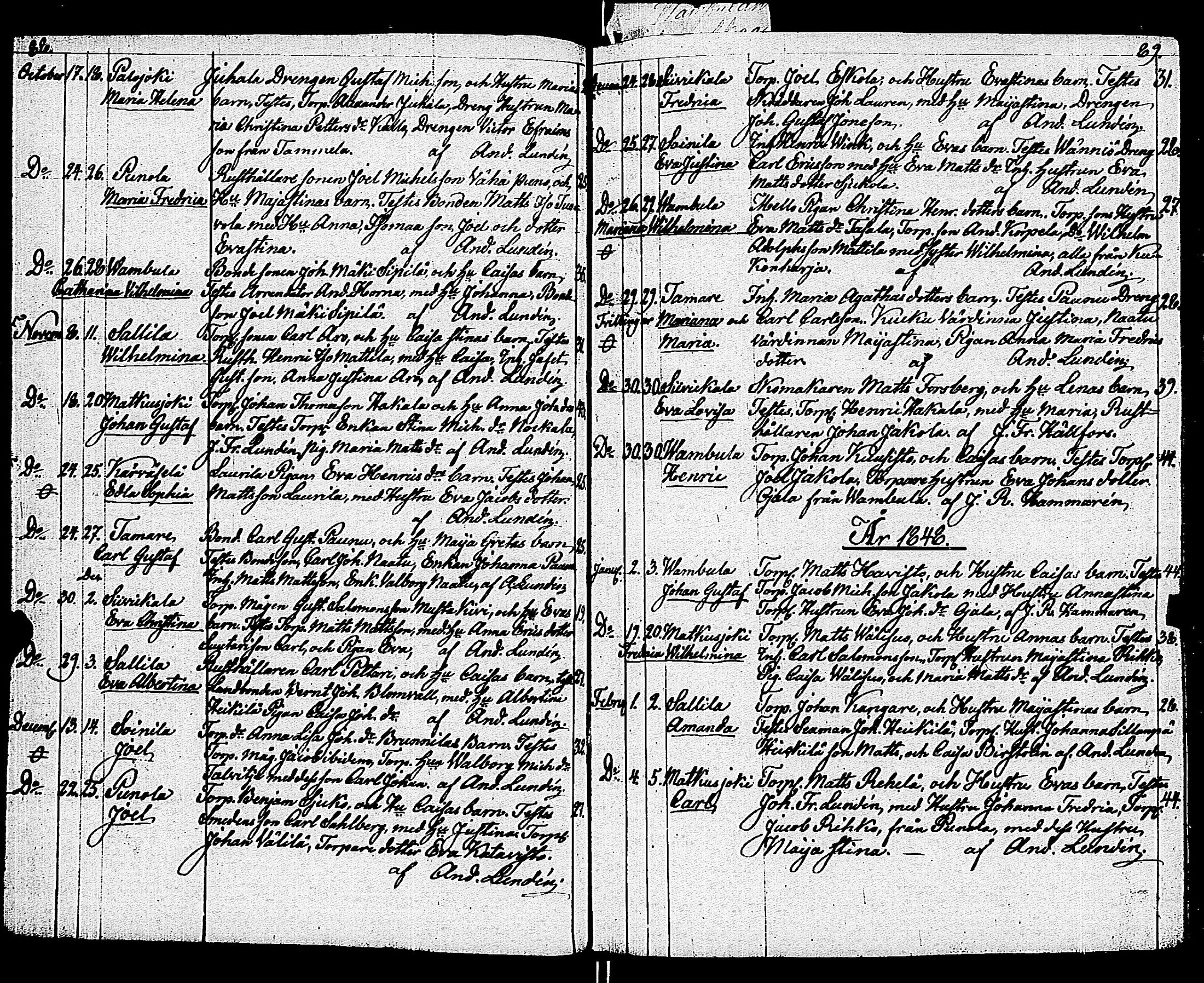 Vampula , Syntyneet-vihityt-kuolleet, 1837-1872
