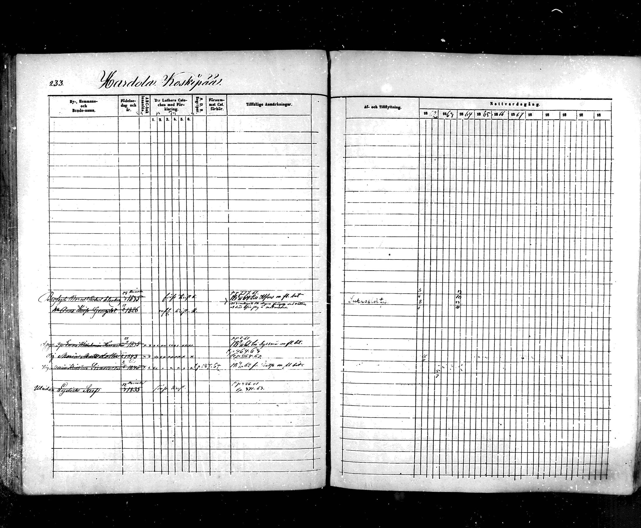 Hartola , Rippikirja, 1857-1867