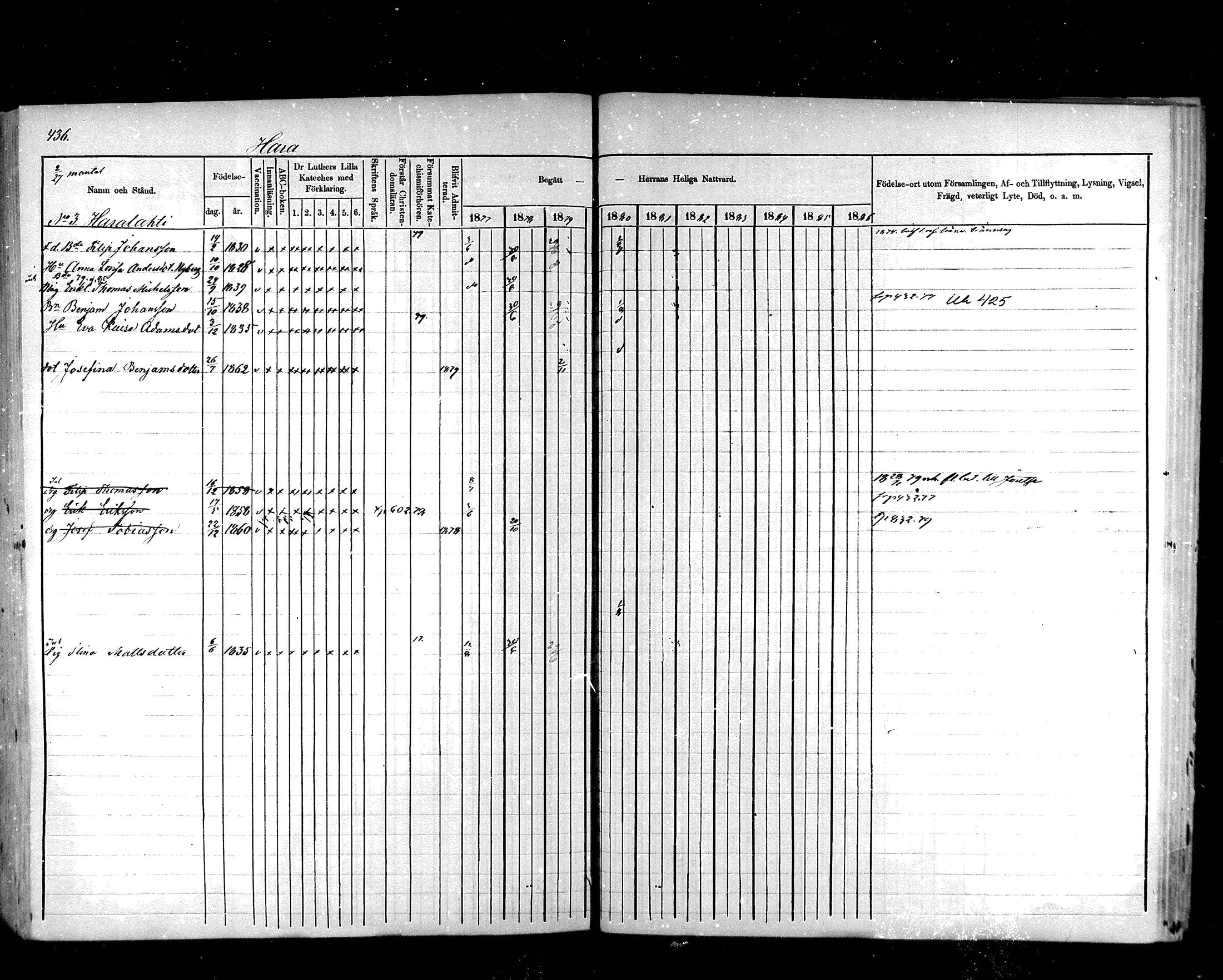 Hartola , Rippikirja, 1876-1880