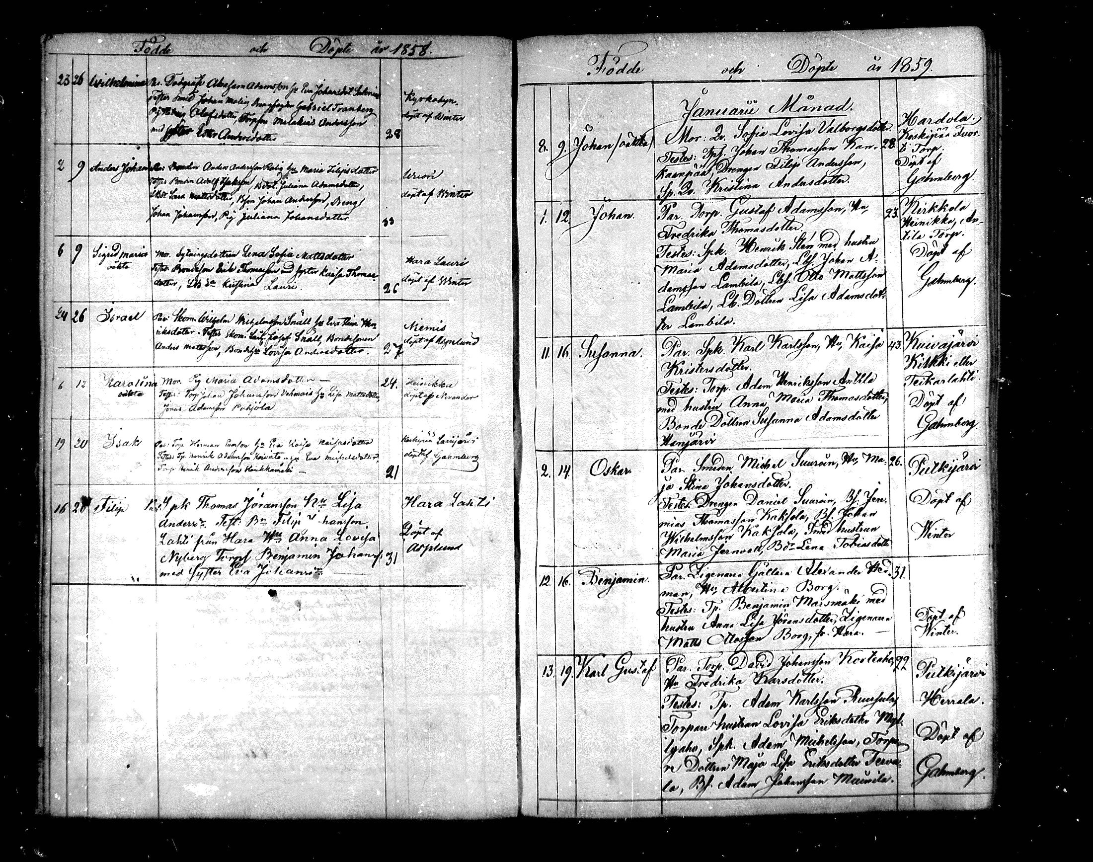 Hartola , Syntyneet, 1849-1866
